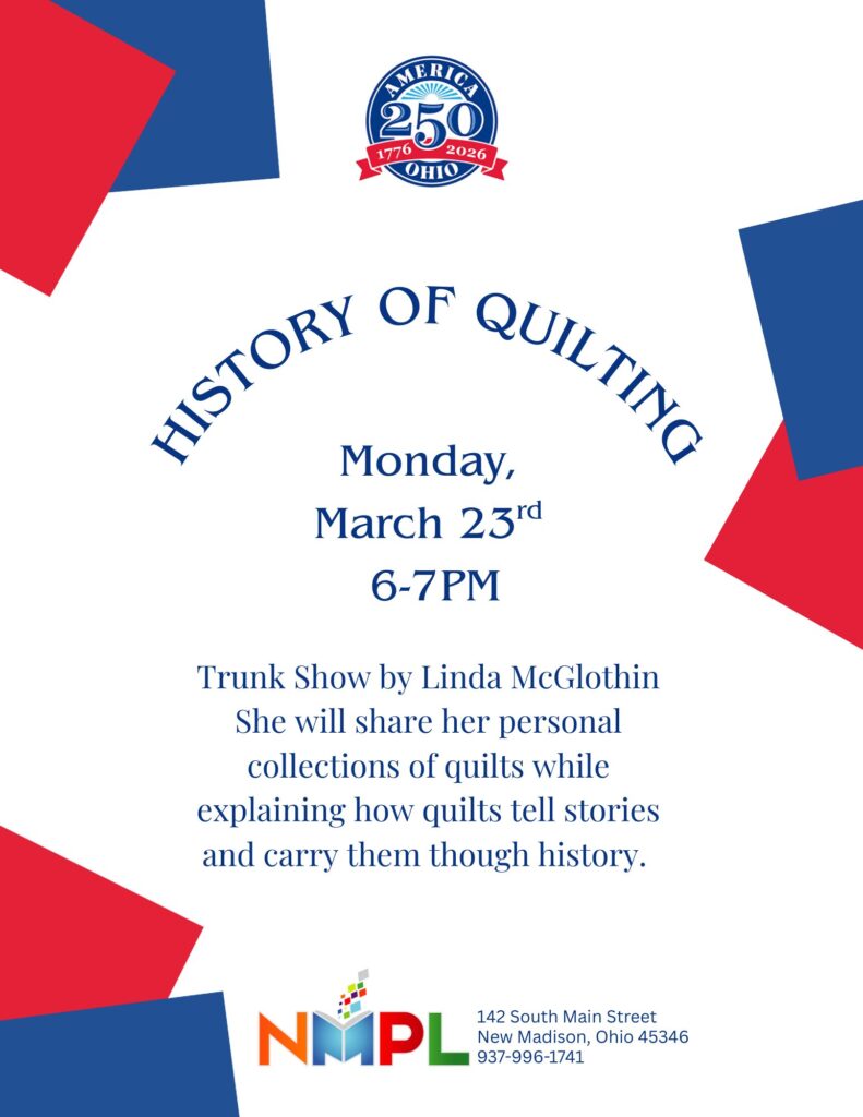 We are continuing to give you the online ability to track your reading. Not only to track your reading but have a chance to win prizes! You can also write book reviews and participate in special library challenges! You can use the app or go to the website https://mynmpl.beanstack.org/ To download the app Beanstack Tracker, go to your device’s app store (look for the icon pictured above). Once installed, search for New Madison Public Library, click on the library and register you and your family. For both adults and children.